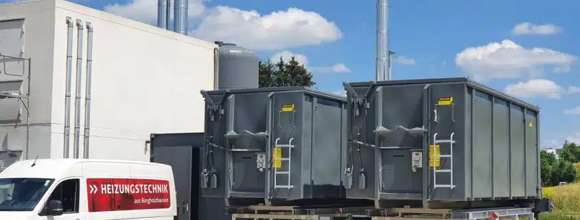 Bei diesem Projekt wurde die Pellet-Lagerung im Container auf die Heizzentralen montiert.